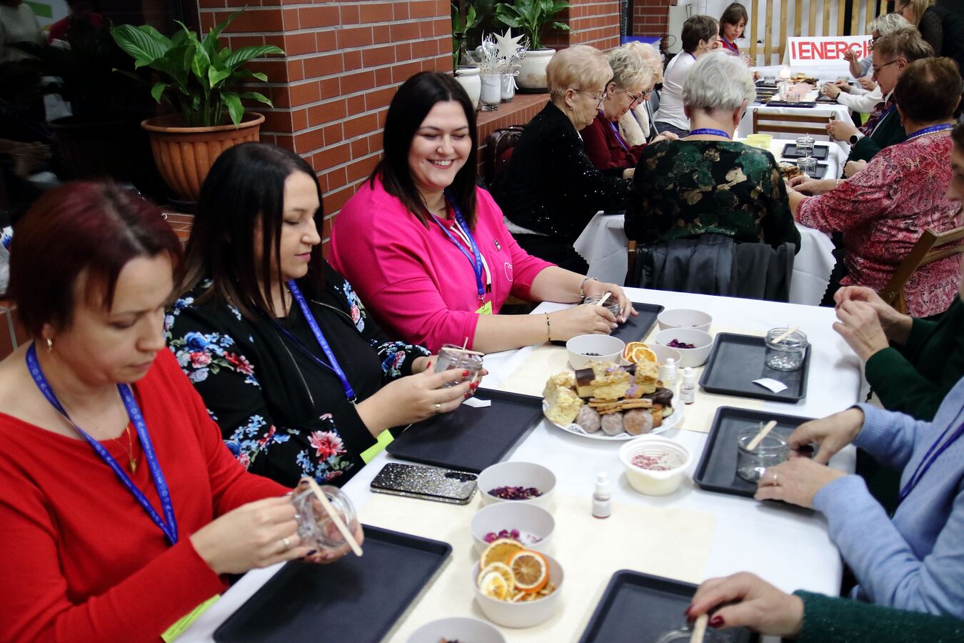 Druga część projektu miała miejsce 7 grudnia 2025 r. w sali teatralnej przy parafii Miłosierdzia Bożego w Brzesku. Odbyły się tam warsztaty tworzenia świec sojowych oraz świątecznych boksów prezentowych. Ważnym elementem spotkania była wspólnota przy stole, rozmowy i radosna, serdeczna atmosfera.