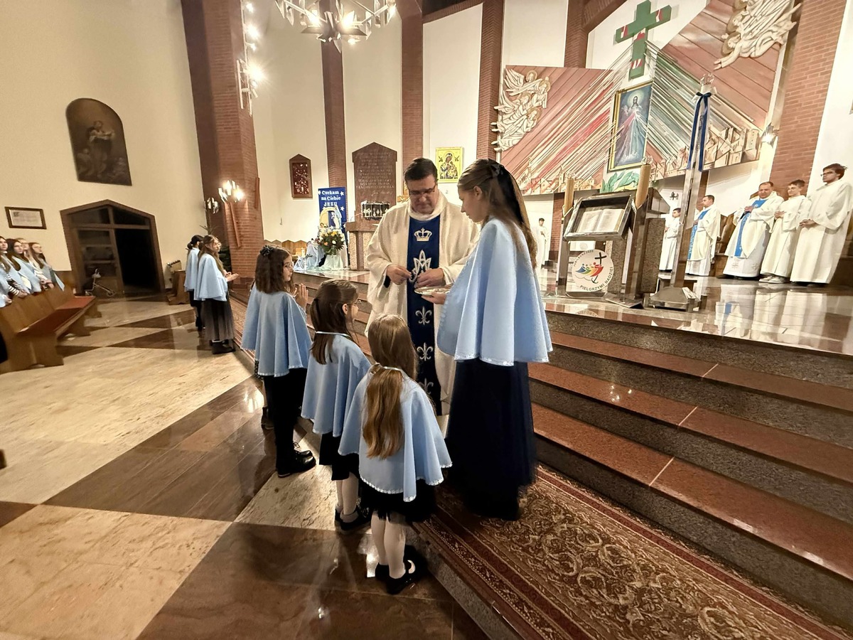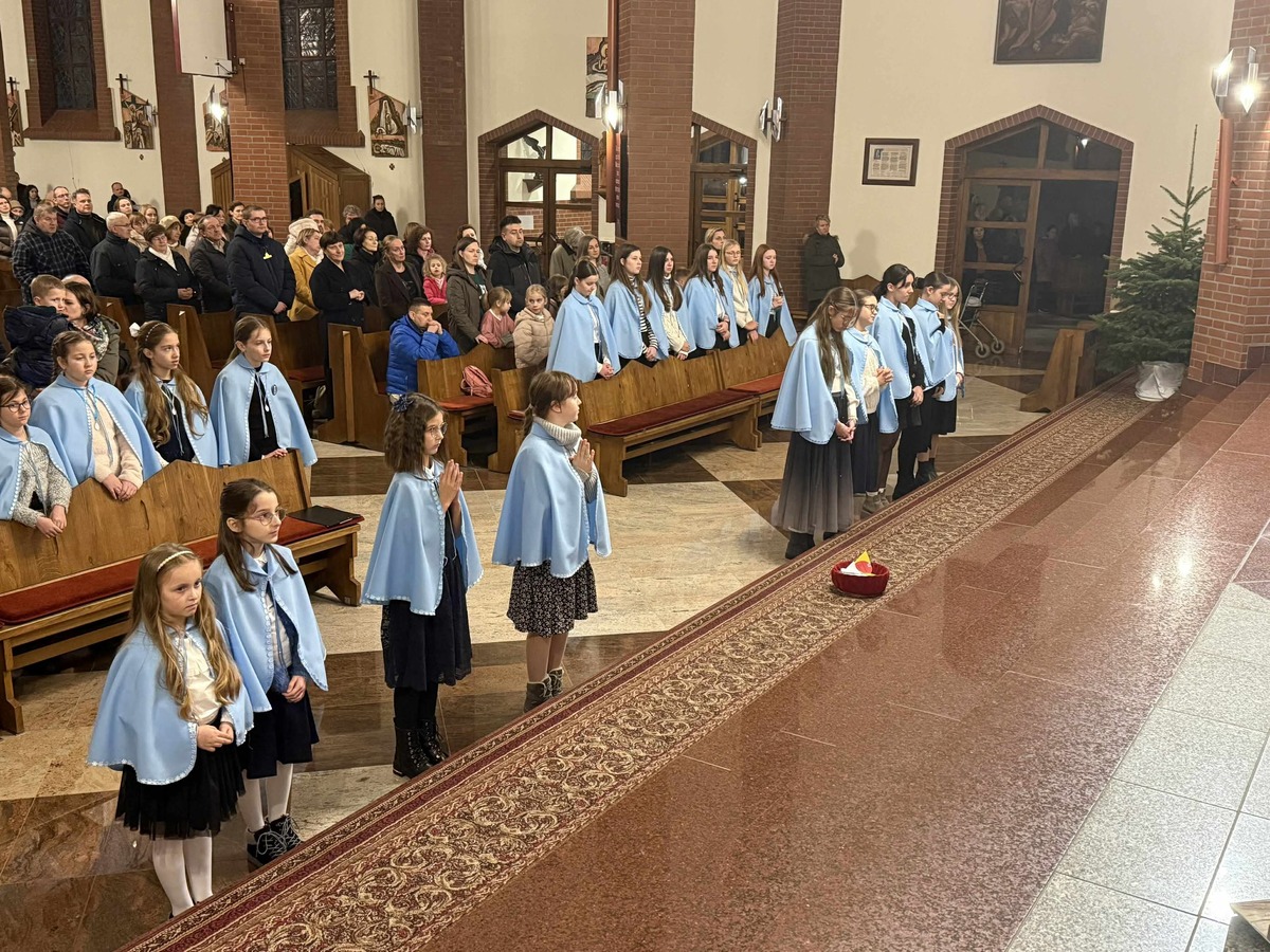 W parafii Miłosierdzia Bożego, w czasie Mszy Świętej, część dziewcząt miała nadane wyższe stopnie DSM-mu. Najmłodsze zostały przyjęta oficjalnie do grona DSM i nadano im stopień Dziecka Maryi. Następnie kolejne dziewczęta były przyjmowane na wyższe stopnie takie jak: Bielanki i Nazaretanki. Pod koniec Mszy dziewczęta wręczyły upominki ks. Proboszczowi oraz opiekunom DSM: Siostrze Sylwii i Księdzu Januszowi. Po zakończonej uroczystości dziewczęta dostały kwiatki i zrobiło sobie pamiątkowe zdjęcia. Wszystkim bardzo dziękujemy. Ave Maryja.