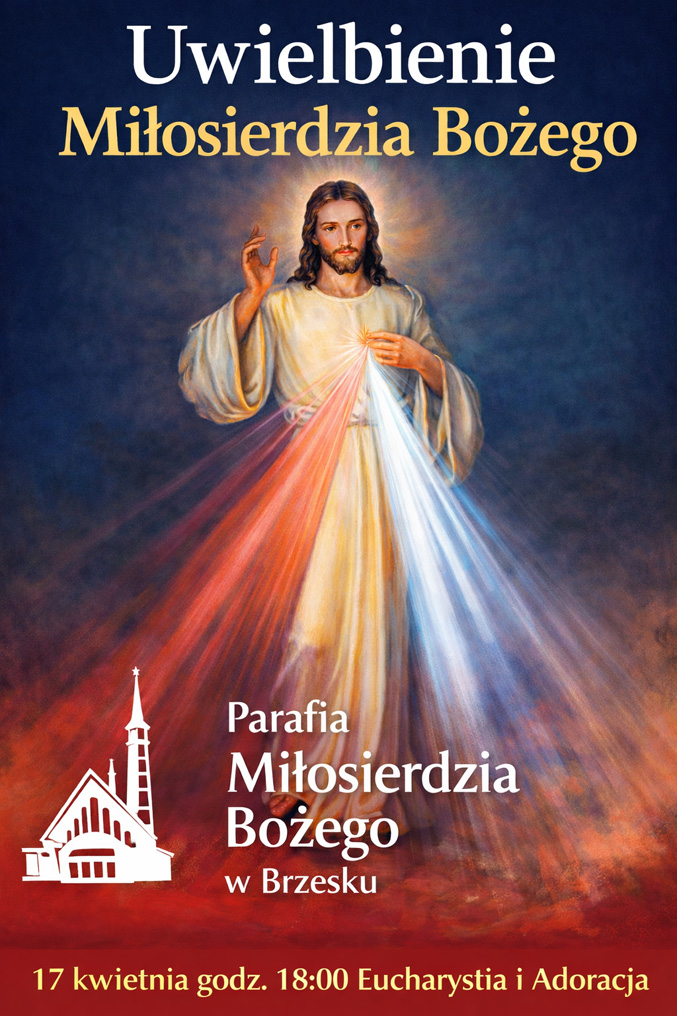W nadchodzącym Tygodniu Miłosierdzia zapraszamy na Uwielbienie Miłosierdzia Bożego w piątek, 17 kwietnia. Rozpoczniemy Eucharystią o 18.00, potem adoracja Najświętszego Sakramentu, którą zakończymy apelem o 21.00.