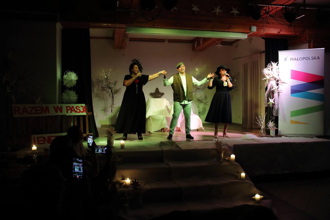 Największą radość uczestnikom sprawiły występy wolontariuszy Ewy i Marii oraz koordynatora projektu, ks. Marcina, którzy wykonali znane i lubiane piosenki z lat 70., 80. i 90. Wspólne śpiewanie i muzyka stały się pięknym zwieńczeniem całego przedsięwzięcia i jeszcze bardziej zintegrowały uczestników.