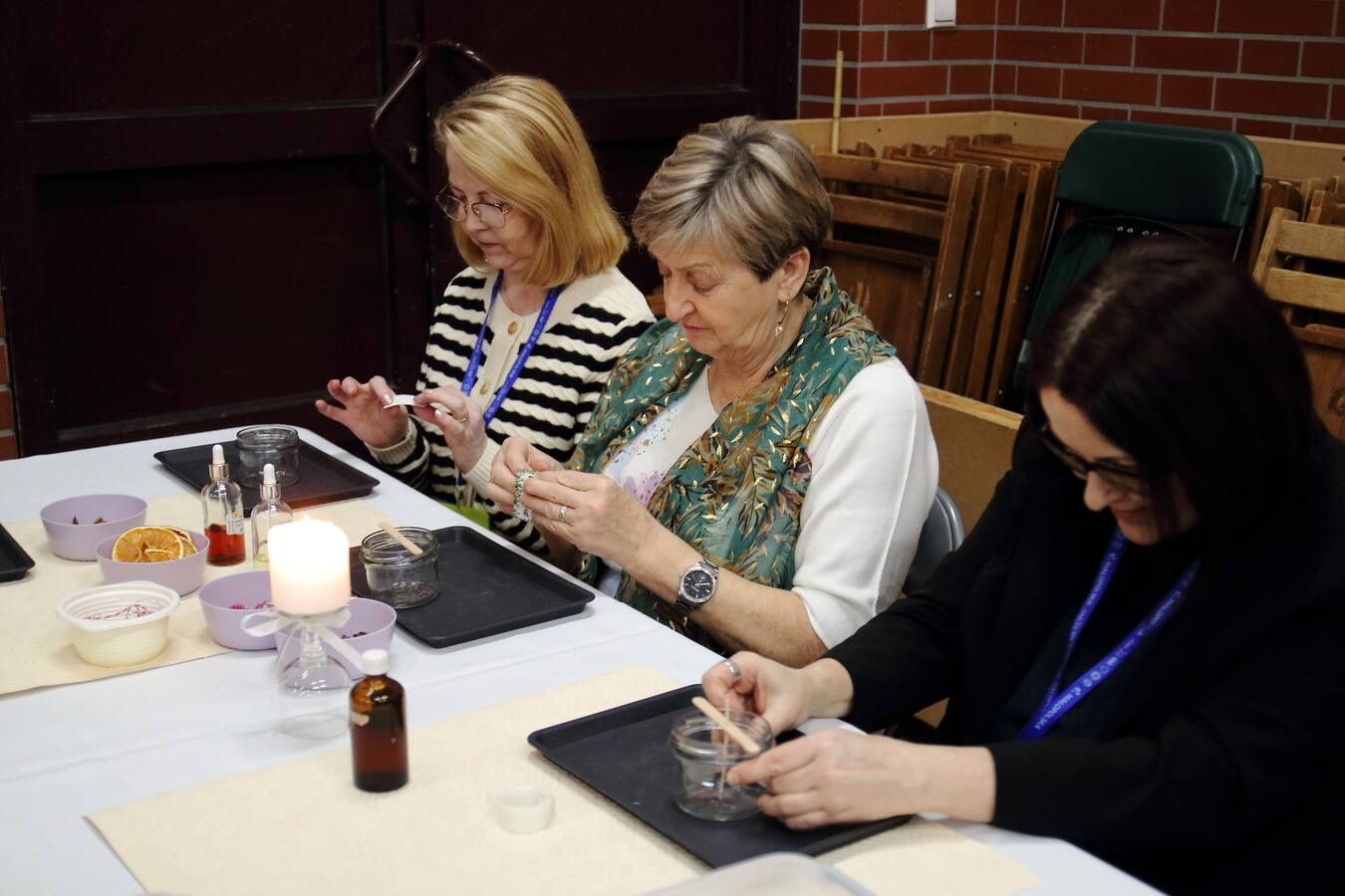 Druga część projektu miała miejsce 7 grudnia 2025 r. w sali teatralnej przy parafii Miłosierdzia Bożego w Brzesku. Odbyły się tam warsztaty tworzenia świec sojowych oraz świątecznych boksów prezentowych. Ważnym elementem spotkania była wspólnota przy stole, rozmowy i radosna, serdeczna atmosfera.