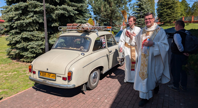 Po co ksiądz katolicki do tego wszystkiego? – On też jest kierowcą, też korzysta z samochodu. No i jeżeli wierzymy w moc błogosławieństwa Bożego, to wierzymy, że Pan Bóg czuwa nad każdym naszym wyjściem i powrotem. Aczkolwiek nie możemy zapominać, że przepisy ruchu drogowego istnieją i praw fizyki człowiek nie przeskoczy. Jest to też pewnie jakieś takie niszowe apostolstwo, niszowe duszpasterstwo. No pewnie nie wszyscy ci ludzie są blisko Kościoła, nie wszyscy są blisko Pana Boga, ale z drugiej strony jeżeli przyjadą na imprezę zorganizowaną przy kościele, przez parafię i klub starych samochodów, to zawsze wygląda jakoś inaczej. Zawsze ktoś powie, że był na fajnej imprezie, którą zorganizował ksiądz. Więc jest to forma apostolstwa, jakiegoś zbliżenia tych ludzi do Pana Boga. Może nie wprost, ale zawsze jest to jakaś okazja, żeby o Panu Bogu coś usłyszeli – wyjaśnia ks. Werner.